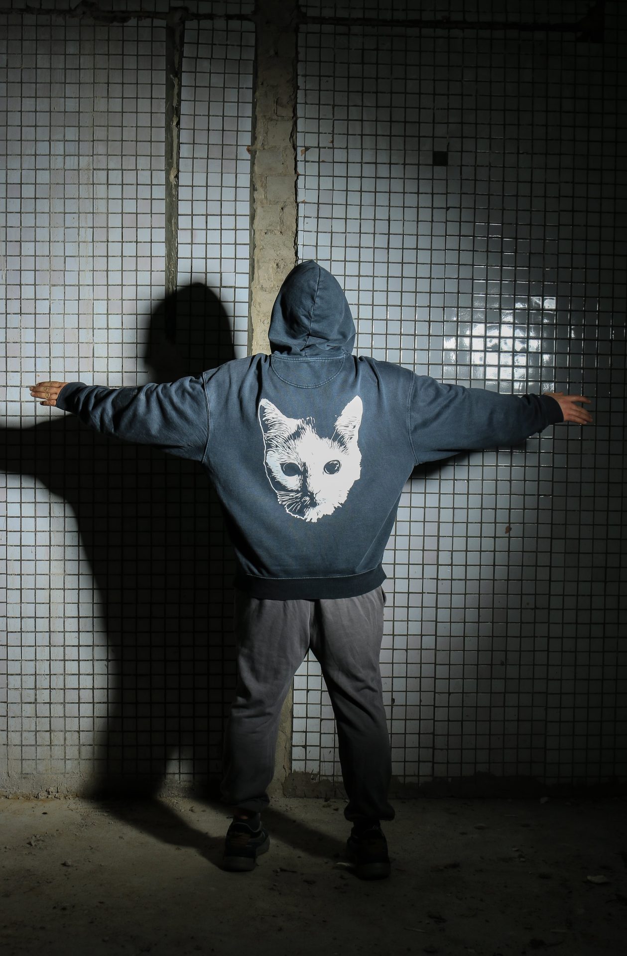 Dizainas iš mūsų tikro katino nuotraukos. Šilkografija spaudžiama tiesiai į audinį, todėl vaizdas laikosi geriau nei lipdukai ar plėvelės. Jauti, kad džemperis gyvas, o ne plastiku aptrauktas.