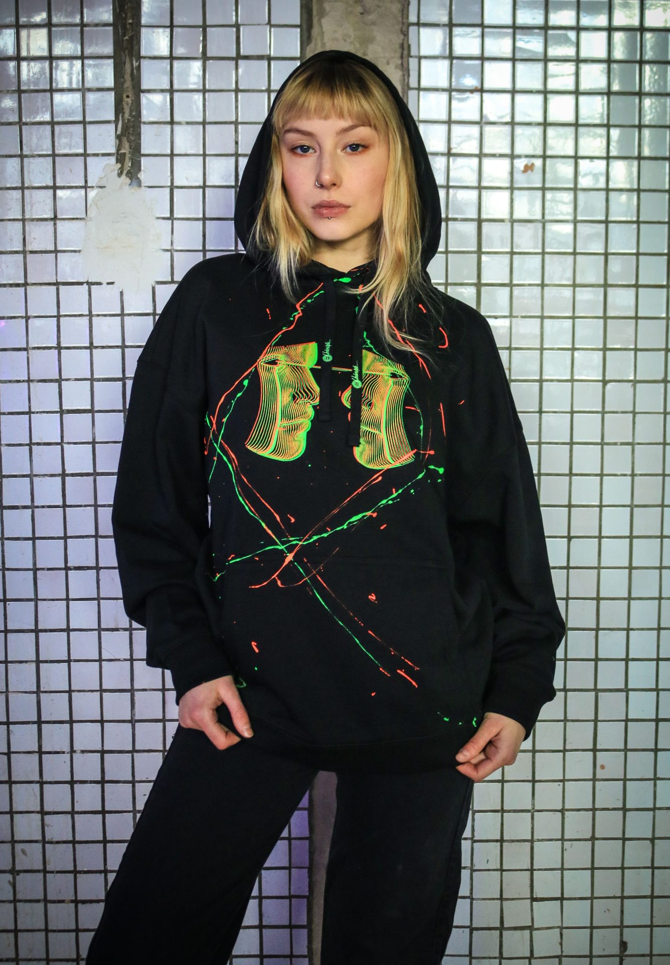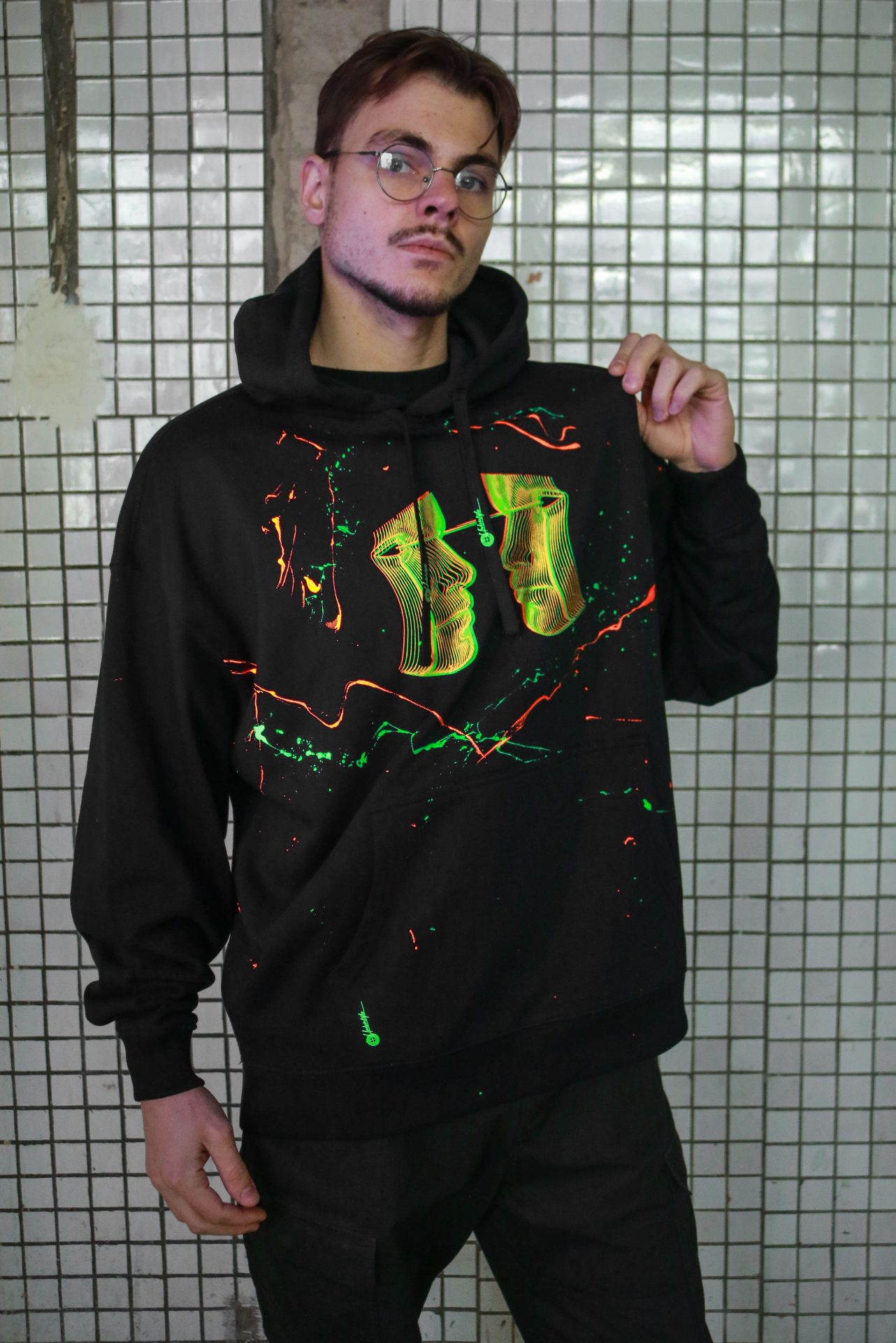 Džemperis su kapišonu vintage ”face uv green red”