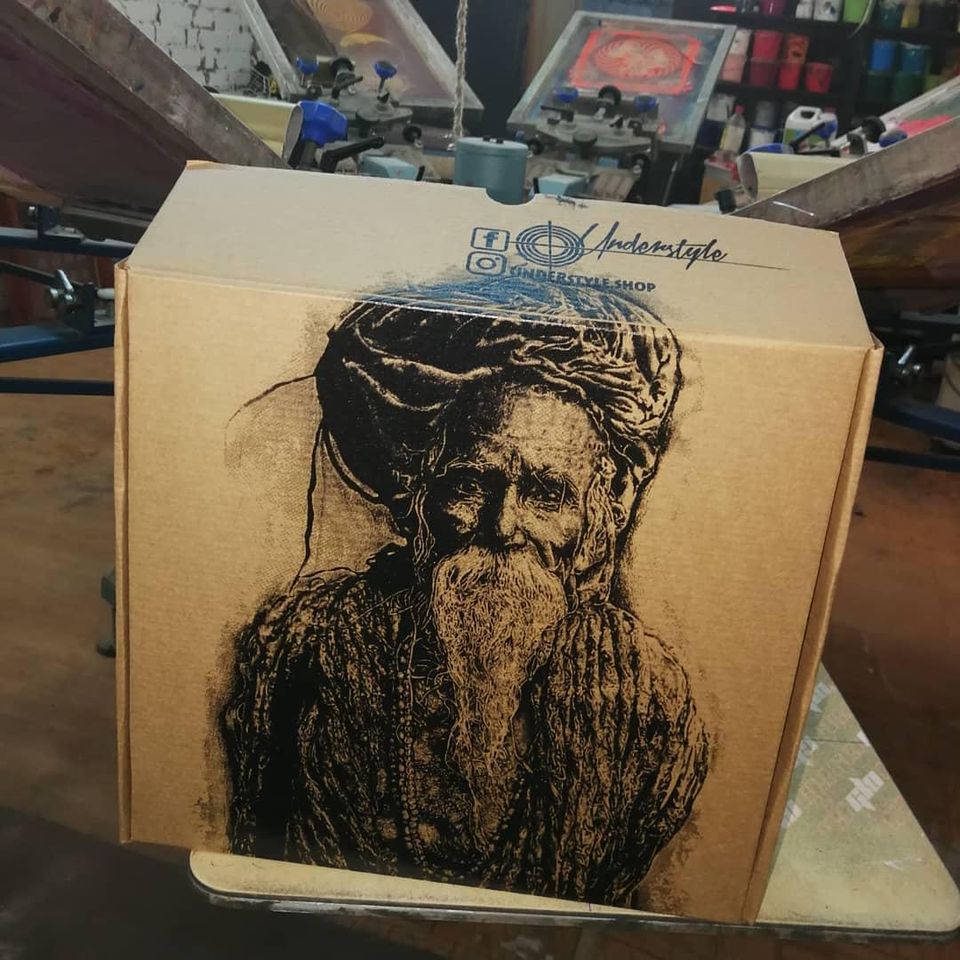 Rankų darbo šilkografinė spauda.